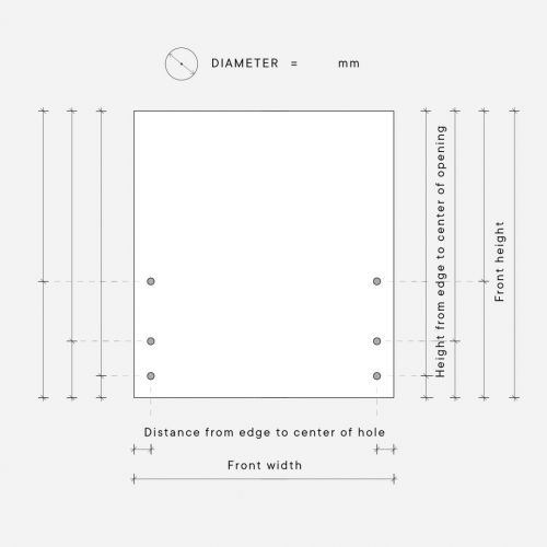 Prepare drawings indicating where the holes for hinges are made in the currently installed fronts. Use our drawing. Make sure that the distances are measured in the correct places.