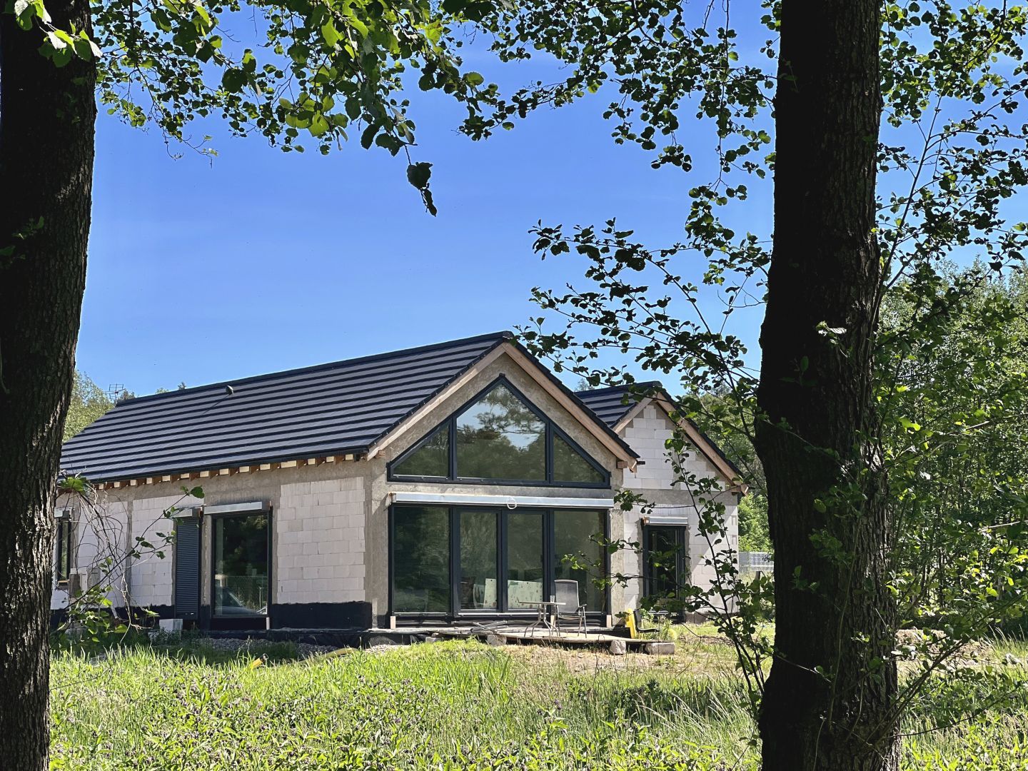 Tak, część salonową zrobilibyśmy dłuższą o 1,5-2m. Początkowo myśleliśmy o tym, jednak granica działki z lasem nas ograniczała i wydłużenie tej bryły zmieniłoby ułożenie domu - musiałby stać bardziej pod skosem, co od strony wjazdu samochodem nie byłoby wygodne. Niemniej, teraz kombinowali byśmy bardziej, aby wydłużyć salon, bo musieliśmy się nagimnastykować z doborem krzeseł i stołu, aby można było komfortowo przy nich usiąść.