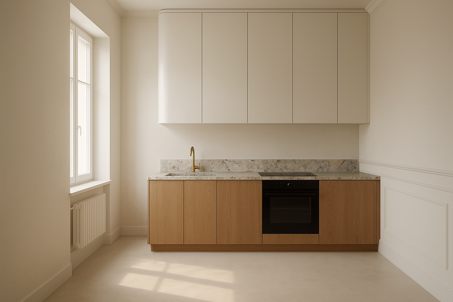 Kuchnia do sufitu to jeden z najbardziej efektownych sposobów na zagospodarowanie wysokich pomieszczeń. Zabudowa do sufitu w kuchni nie tylko zapewnia miejsce na rzadko używane akcesoria, ale też tworzy wrażenie mebli na wymiar. Meble do sufitu w kuchni wymagają jednak przemyślanego podejścia – górne szafki powinny harmonizować z dolnymi, a fronty do mebli kuchennych w jednolitym wykończeniu to podstawa sukcesu. W przypadku stosowania korpusów modułowych z IKEA, w QOOD można zastosować np. przedłużone fronty z górną krawędzią, które zastępują kilkucentymetrowe maskownice od sufitu. Istnieje też możliwość użycia korpusów na wymiar, które wypełnią przestrzeń nad szafkami, gdy potrzebna wysokość nie występuje w standardowych modułach. Kluczowe elementy udanej realizacji to z pewnością: