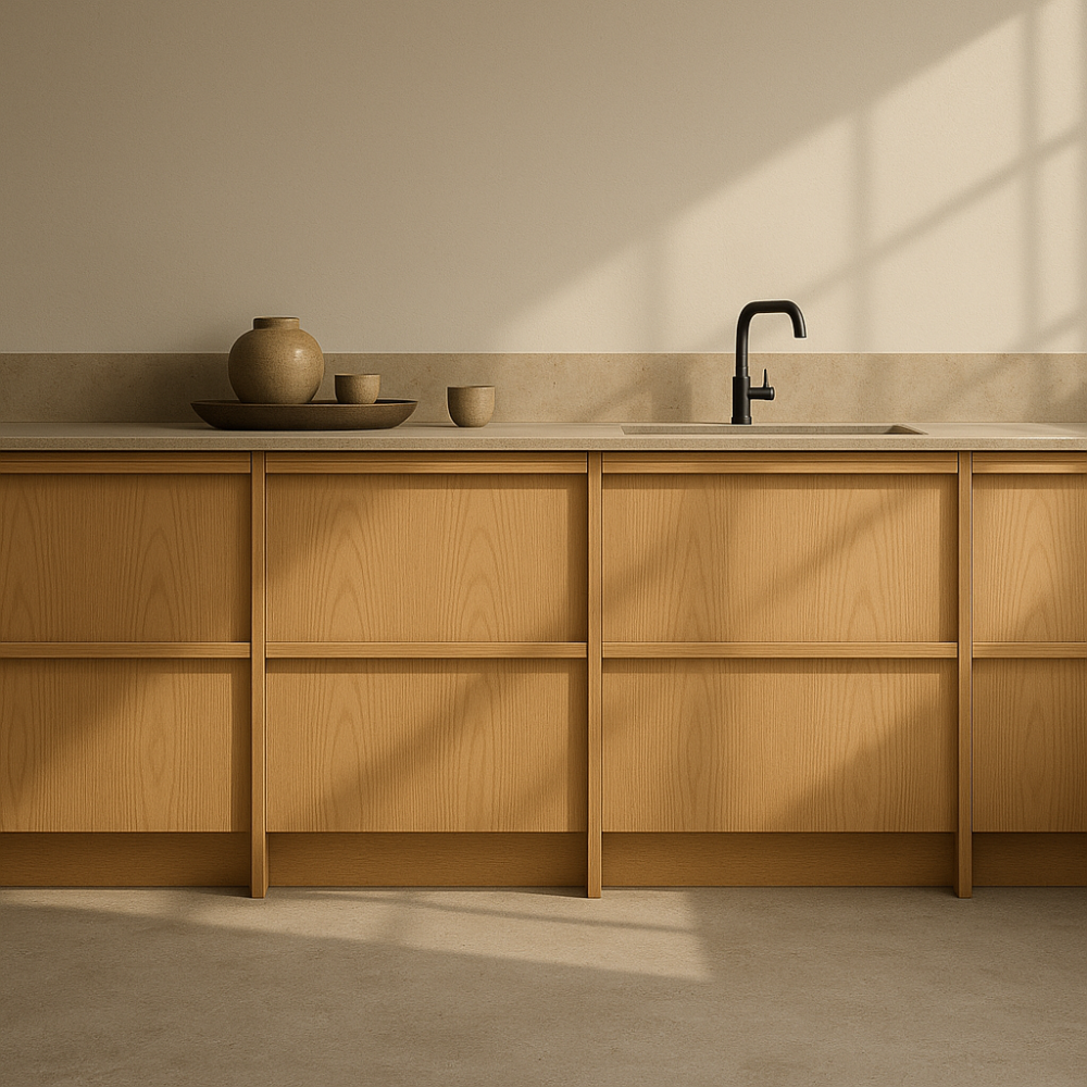 Front wykonany z naturalnego forniru drewnianego, dlatego nie występuje w nich powtarzalność usłojenia oraz barw