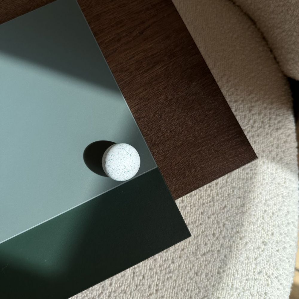 In the visualization elements are made of Stone Green / EGGER U665 ST9 board.